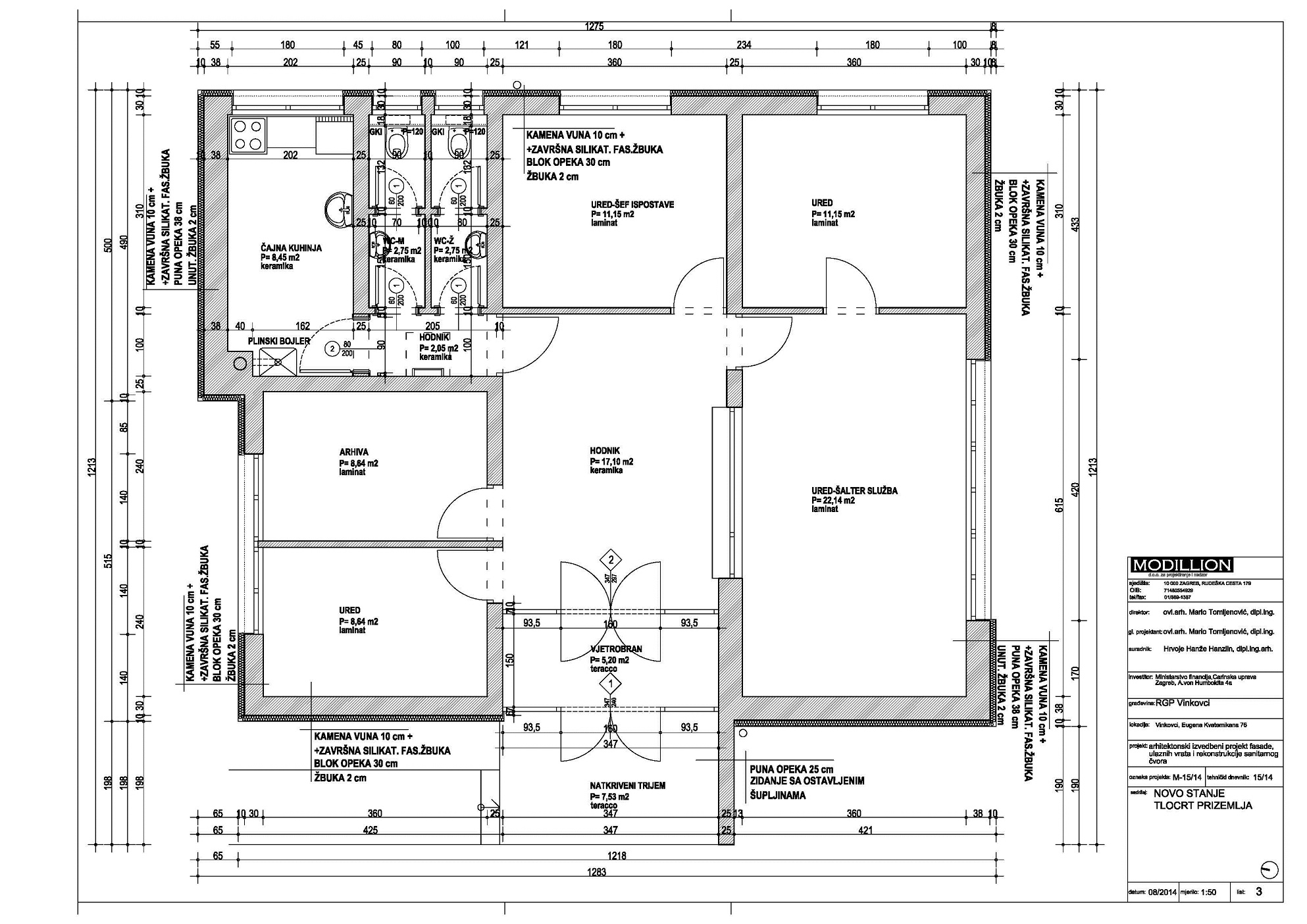 Glavni Projektant na izradi projektne dokumentacije izvedbenog arhitektonskog projekta rekonstrukcije fasade i dijela građevine.